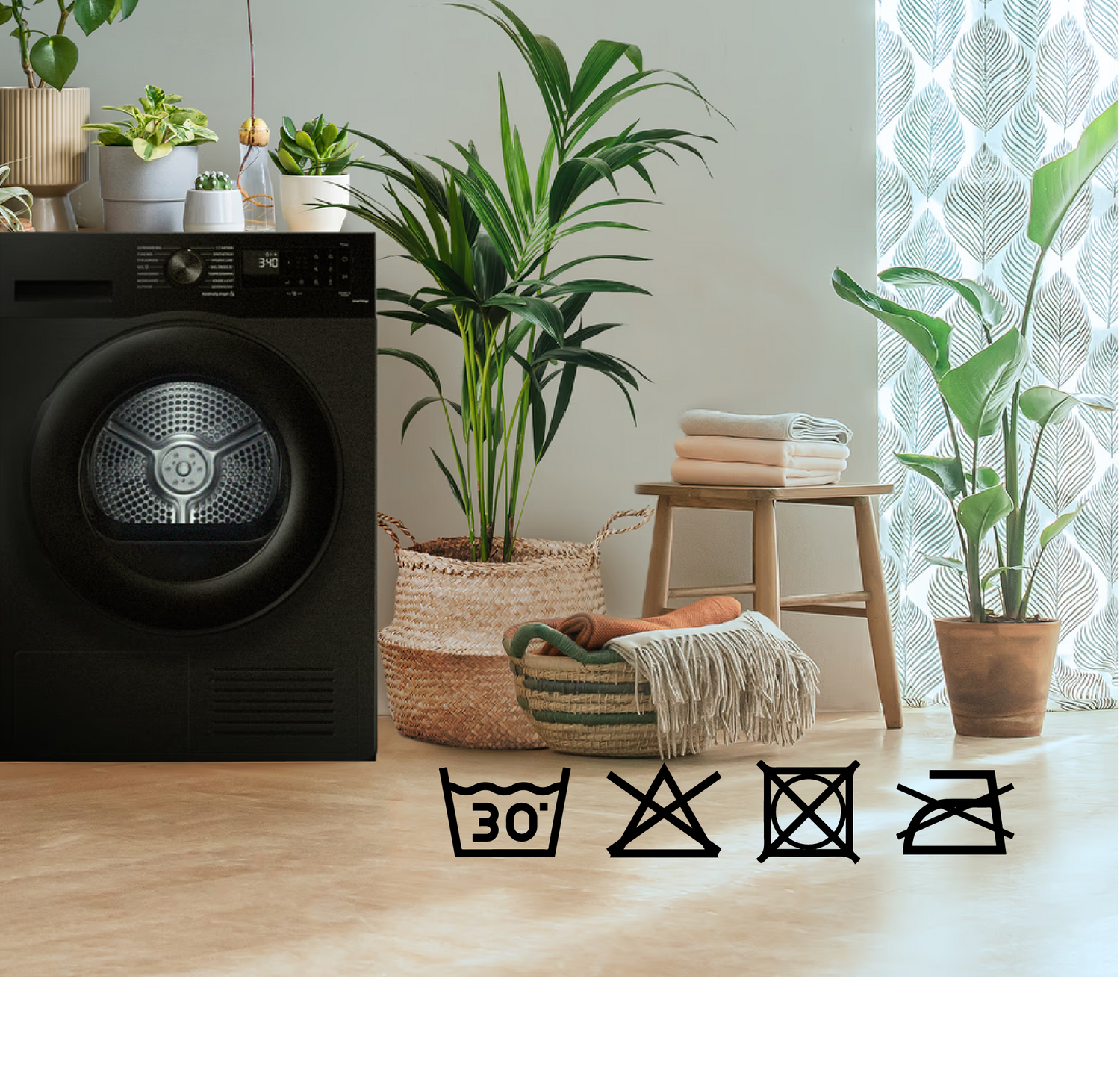 ✔️ Niet geschikt voor strijken of bleken.